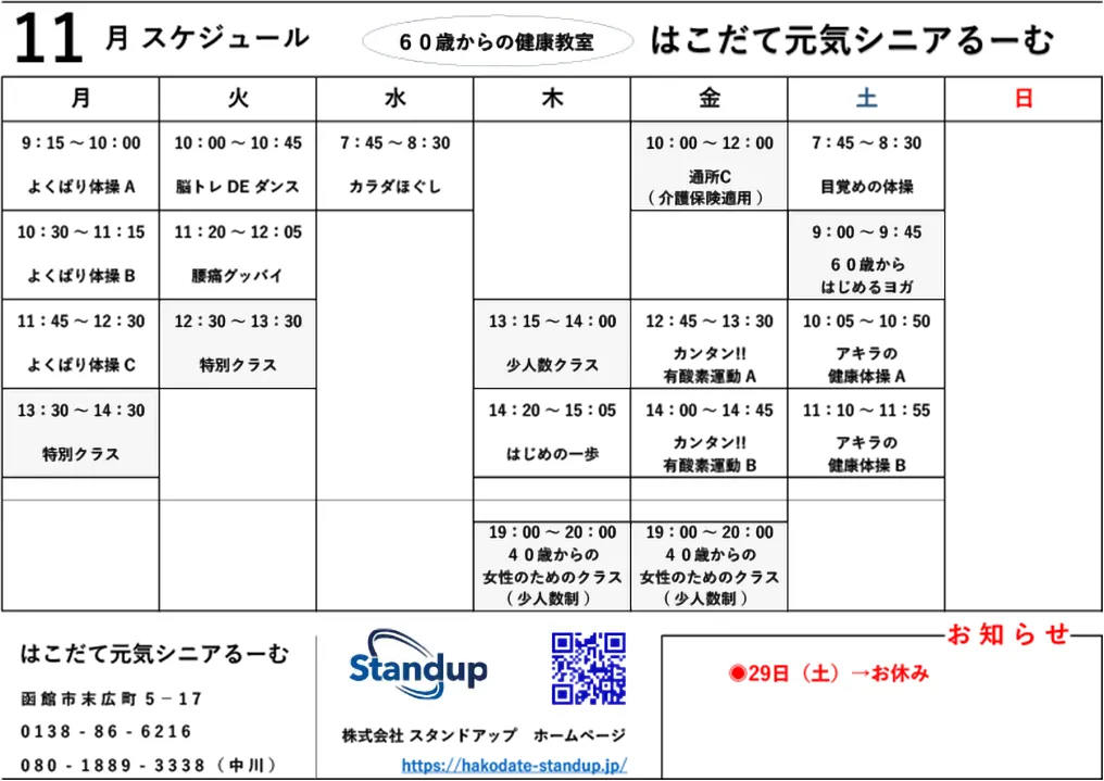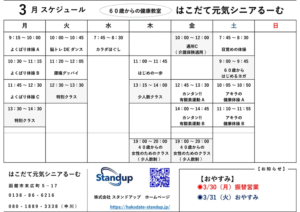 60歳からの健康教室(月会費制) はこだて元気シニアるーむ
